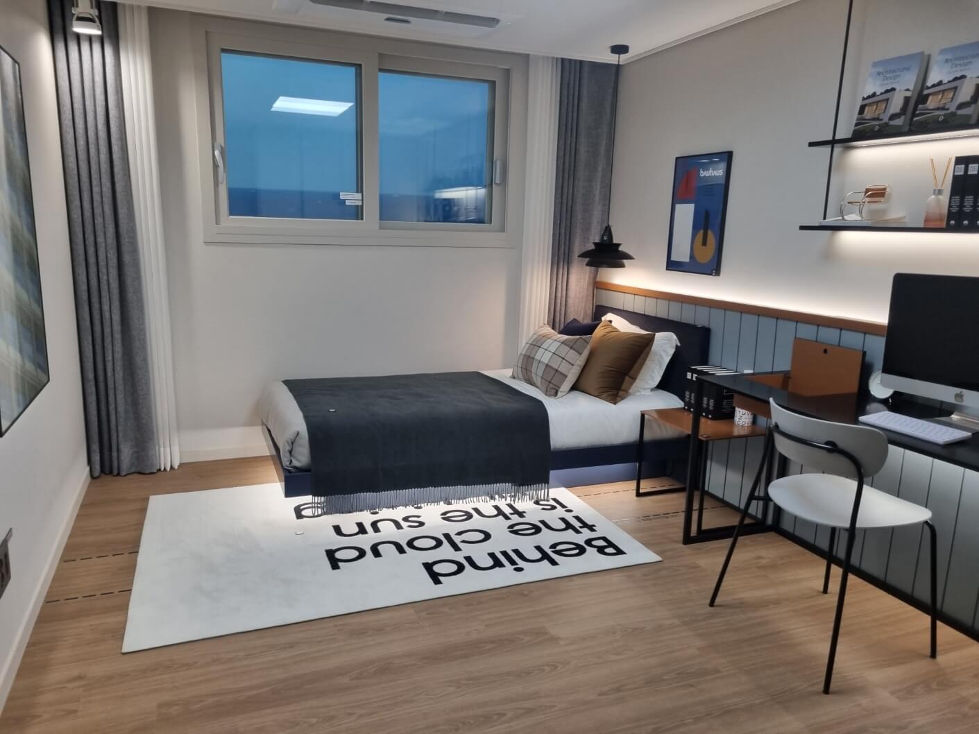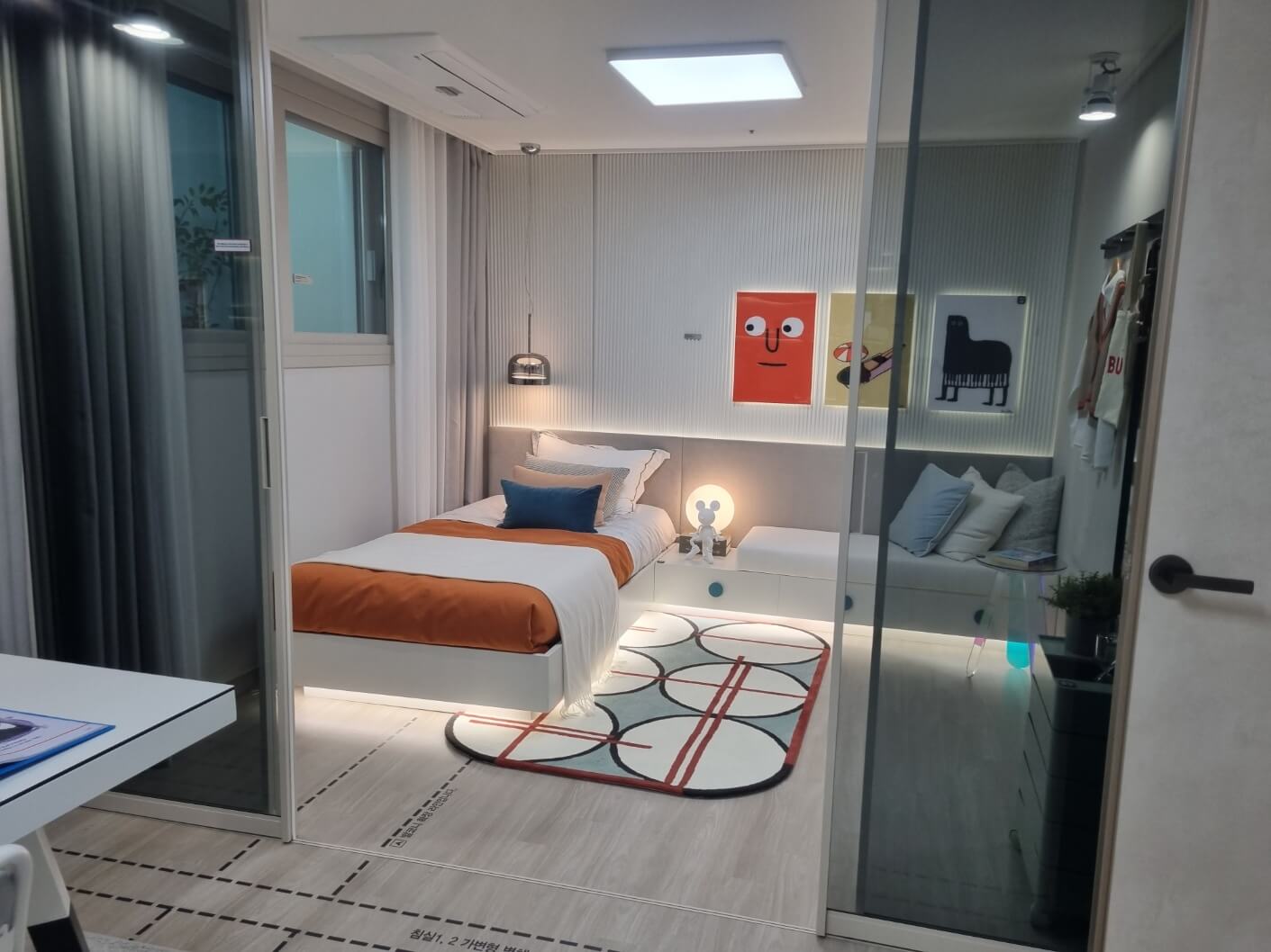 단지 내에는 피트니스 센터, 실내 골프 연습장, 스크린 골프장 등 다양한 운동 시설이 마련되어 있습니다. 또한 키즈카페, 맘카페, 맘스스테이션, 주민공동창고, 어린이집, 경로당 등 600여 평 규모의 대형 커뮤니티 시설도 갖추고 있어 입주민들이 편리하게 이용할 수 있습니다. 세대에서는 해안과 한라산을 한눈에 담을 수 있는 조망권도 제공하여 쾌적한 주거 환경을 제공합니다.