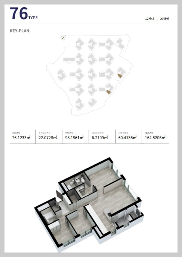 세대 내부에는 펜트리와 드레스룸 등 다양한 공간을 구성해 공간활용성을 높였으며, 주차장은 지하에 위치하여 지상에는 차가 없는 안전한 단지로 설계되었습니다.