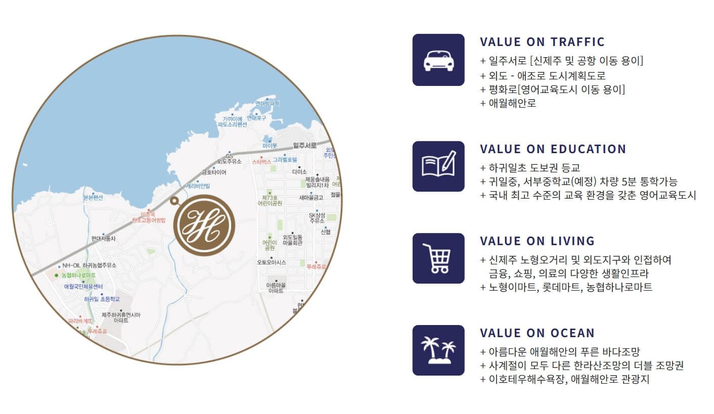 단지는 한라산뷰와 애월바닷가를 품고 있어 뛰어난 자연환경을 제공합니다. 입주민들은 일상생활에서 자연의 아름다움을 만끽할 수 있으며, 쾌적한 주거 환경을 누릴 수 있습니다.