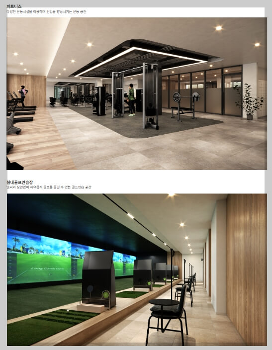 - 주민운동시설: 입주민들의 여유롭게 운동과 휴식을 취할 수 있는 운동공간