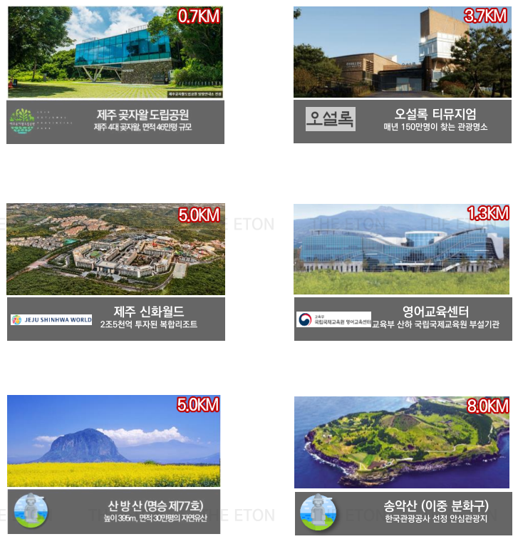 빛나는 미래가치와 민간임대의 압도적 프리미엄, 영어교육도시 內 마지막 공동주택부지, 최고 5층 26개 동, 총 376세대, 주차대수 596대 전용 84㎡(284세대),84B(76세대), 84C(16세대) 규모 공급합니다. 단일평형 및 전 세대 정남향 위주 배치로 향후 학교시설 용지 H-15, H16블록/H-17블록 3개교 MOU체결, 추가학교 용지와 인접해 미래가치 높으면 신화월드, 곶자왈도립공원, 송학산, 산상산등 제주도 대표 관광지 접근가능하며 평화로 및 일주서로 중산간로를 이용하여 제주도 전지역으로 이동이 가능하며 제주공항 차량 40분 정도 소요됩니다.