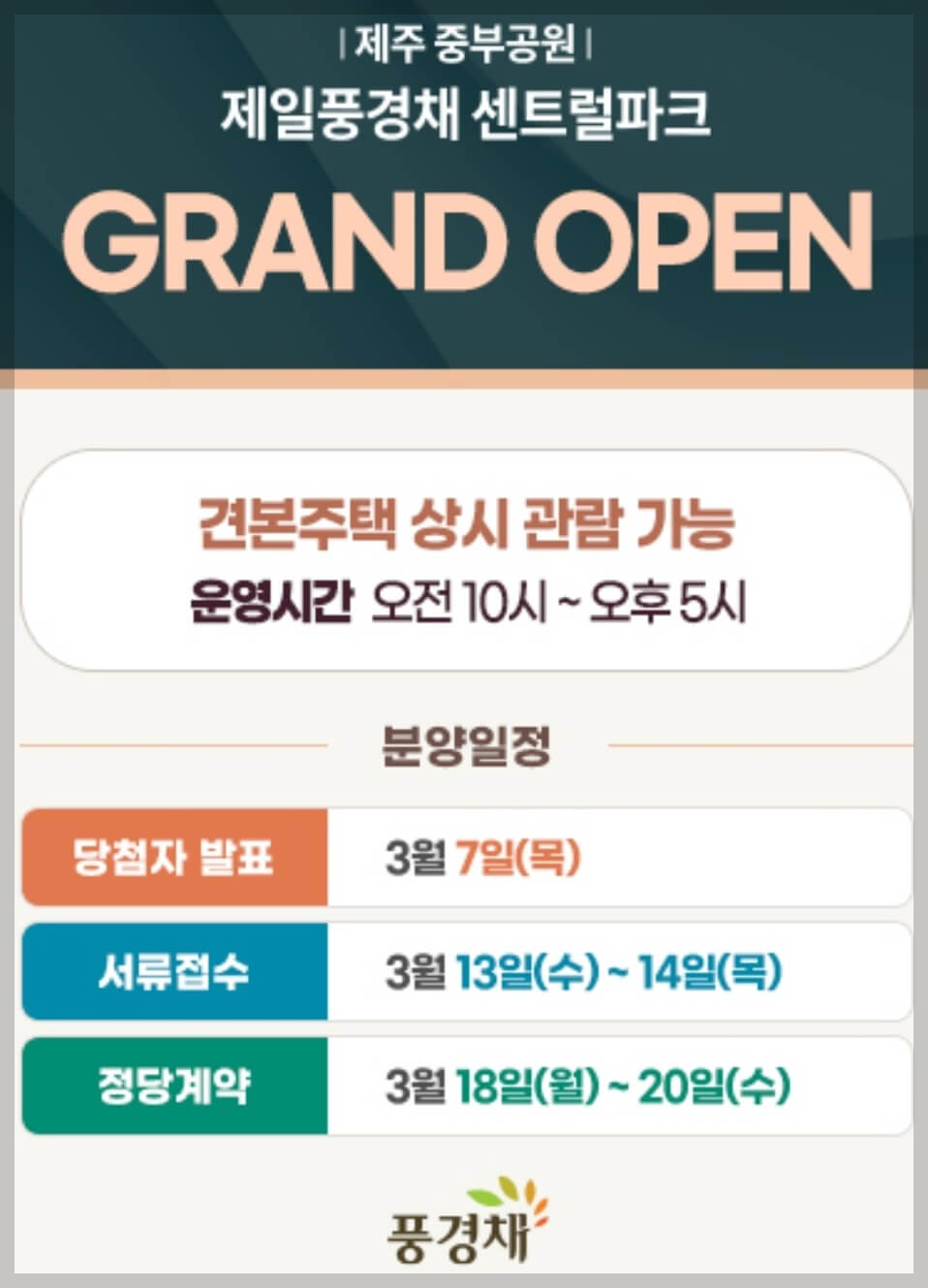 제일 풍경채 특별한 혜택 및 모델하우스 운영시간