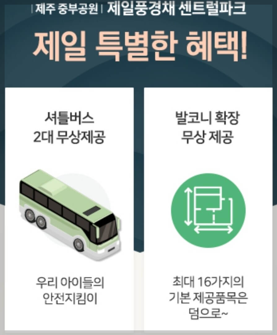 제주 중부공원 제일풍경채 센트럴파크는 주차공간, 건물 외관, 조경, 평면 등 상품과 설계에서도 심혈을 기울이고 있습니다. 이를 통해 제주에 다시없을 랜드마크 단지로 자리매김할 것으로 기대됩니다. 첫 제일풍경채이자 첫 민간공원 특례사업 아파트로서 제주지역 내외로 많은 수요자들의 관심을 받고 있는 화제의 아파트입니다.