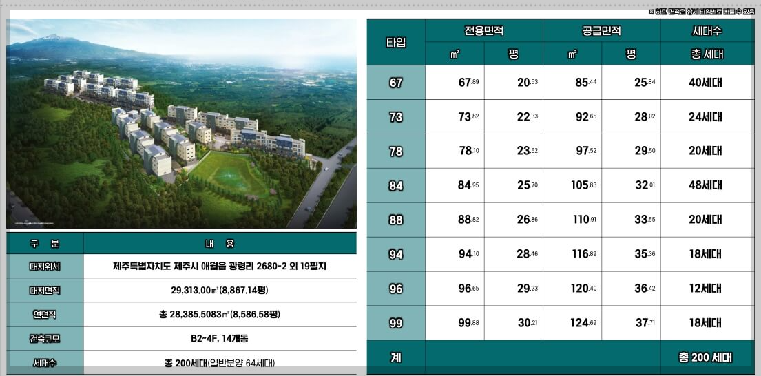 제주 애월읍에 위치한 총 200세대 대규모 단지(한라산, 바다조망)