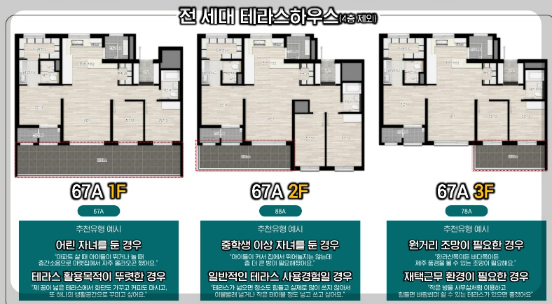 67A 1F(18세대), 67C 4F(18세대), 73A 1F(6세대), 73B 1F(6세대), 78A 3F(18세대), 84B 3F(18세대), 84C 1F(16세대), 84D 1F(2세대), 88A 2F(18세대), 94A 3F(16세대), 96A 2F(1세대), 96B 2F(6세대), 99A 2F(16세대)