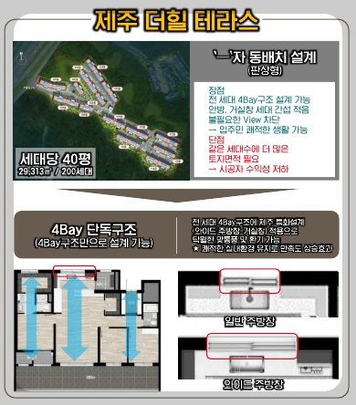 금호건설의 첫 프리미엄 주거단지인 '제주 더힐 테라스'는 제주 애월읍에 위하며, 한라산과 마다를 조망할 수 있는 총 200세대의 대규모 단지입니다. 이곳은 입주민들의 선호도가 높은 4 Bay 구조로 설계되어 있으며, 테라스와 다락방이 있는 리얼한 제주생활을 제공합니다. 제주 더힐 테라스는 제주도 제주시 애월읍 광령리 일원에 지하 2층~지상 4층, 14개 동, 전용면적 67~99㎡(8 type)의 다양한 타입으로 200세대 규모로 조성됩니다.