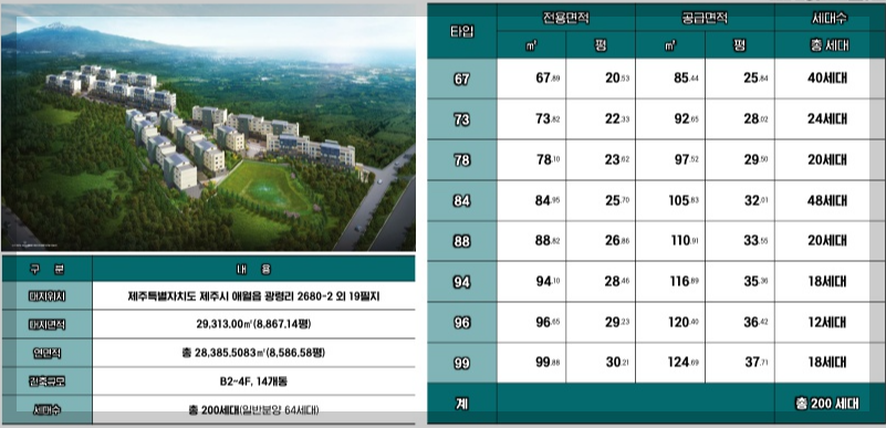 제주 애월읍에 위치한 총 200세대 대규모 단지(한라산, 바다조망)
