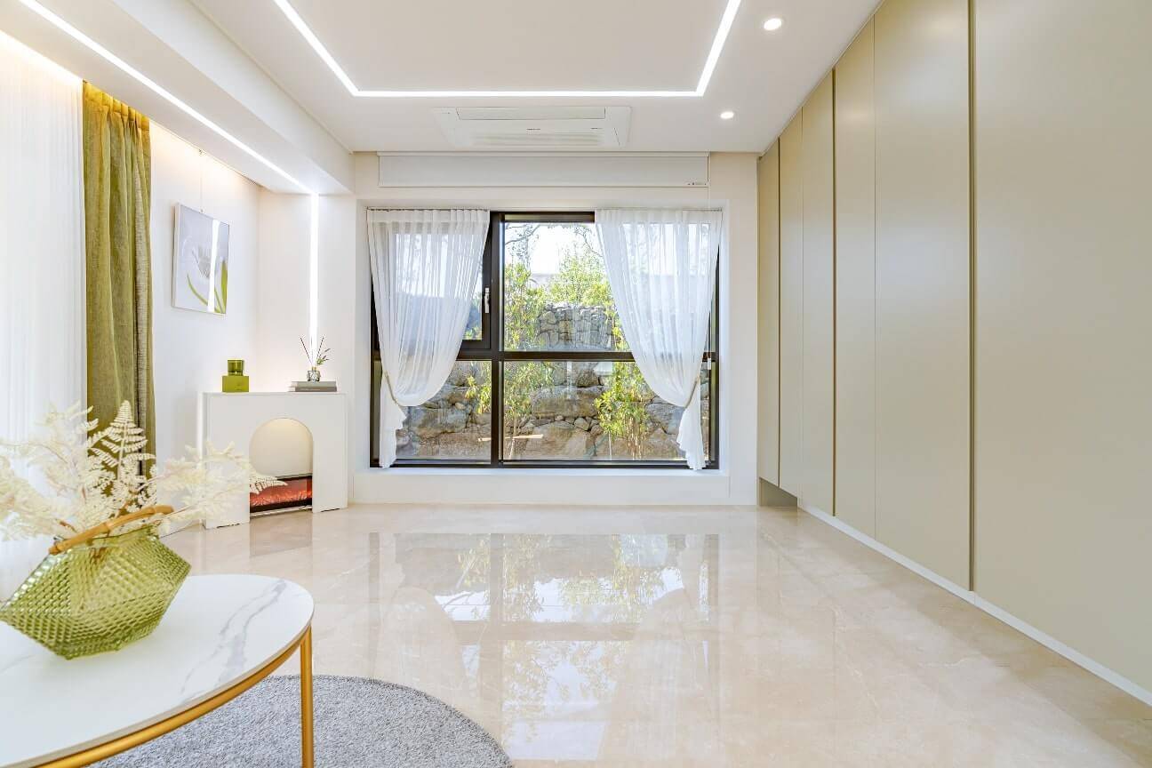 제주 루체비스타에서는 애월바다의 오션뷰와 함께 힐링을 경험할 수 있습니다. 마스터룸에는 히노끼 욕조가 설치되어 있으며, 시스템 에어컨 7대와 듀퐁사 아일랜드 주방, 밀레 주방 시스템, 이태리 파포니 수전 등이 고급스러운 인테리어를 완성합니다.