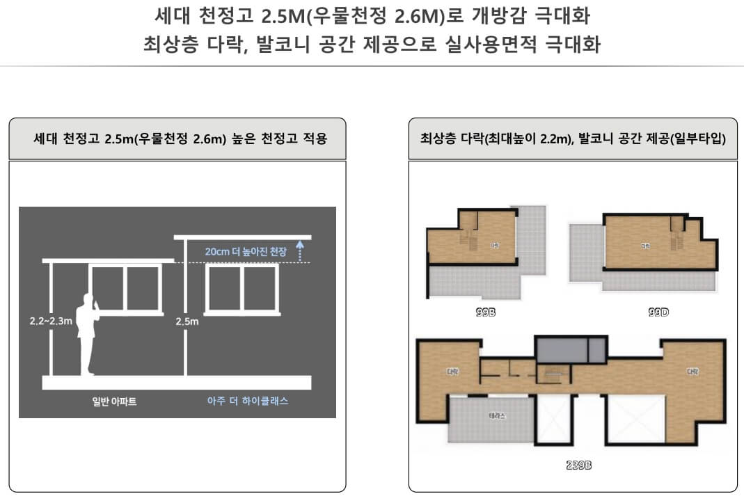 공동주택 전용 99㎡ 평형으로 약 88% 구성, 그 외 전용 220㎡ 이상의 대형 평형으로 구성