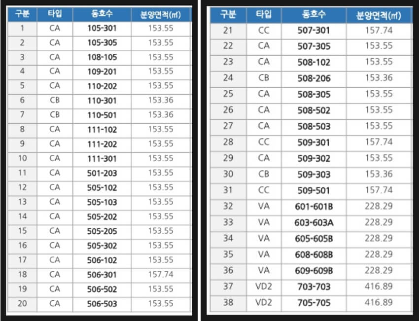 타입/동호수/ 분양면적