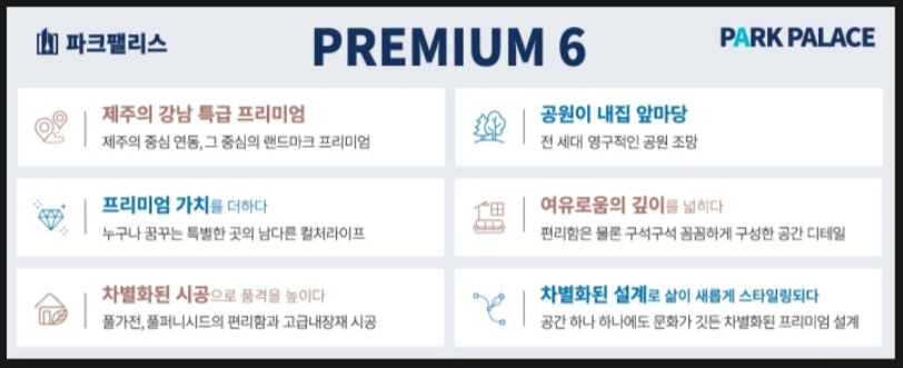 파크팰리스는 제주의 중심 연동에 위치한 최고의 랜드마크로, 도심 속에서도 자연을 즐길 수 있는 영구적인 파크뷰를 제공합니다. 우수한 교통망과 교육환경, 생활 인프라를 갖춘 파크팰리스는 제주에서의 프리미엄 한 생활을 약속합니다. 선착순 계약을 통해 파크팰리스에서 새로운 삶을 시작해 보세요.