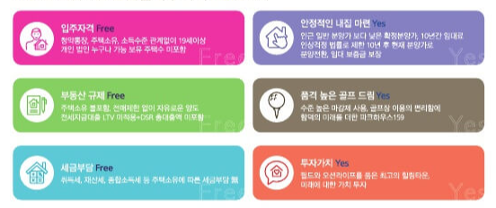 인근 일반 분양가 보다 낮은 확정분양가, 10년간 임대료 인상걱정 법률로 재산 10년 후 현재 분양가로 분양전환, 임대 보증금 보장