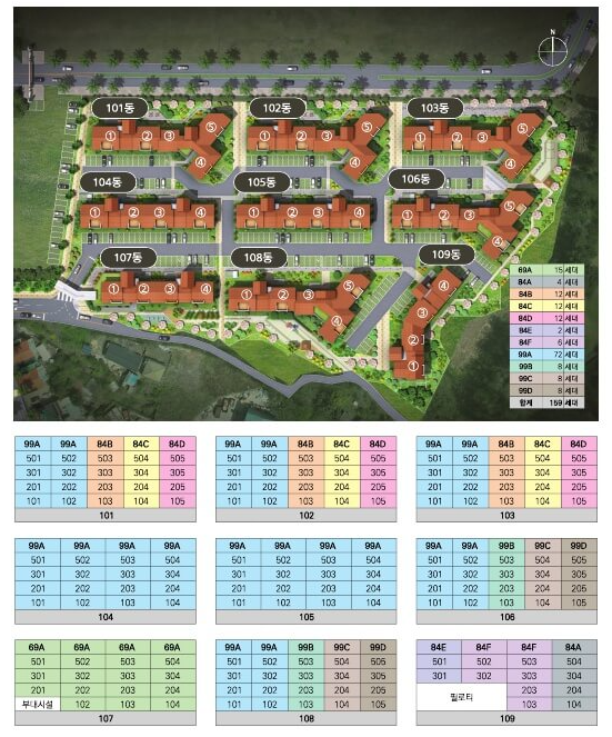총 9개 동 159세대(일반분양공급 49세대, 장기임대공급 110세대)