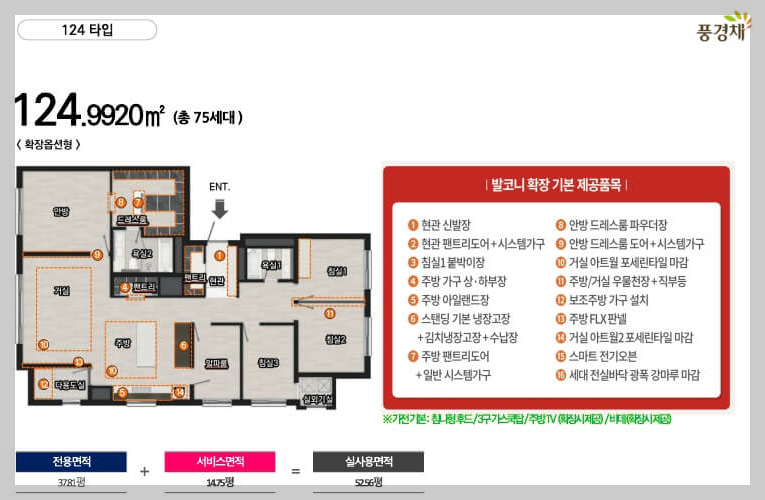 124㎡: 75 가구