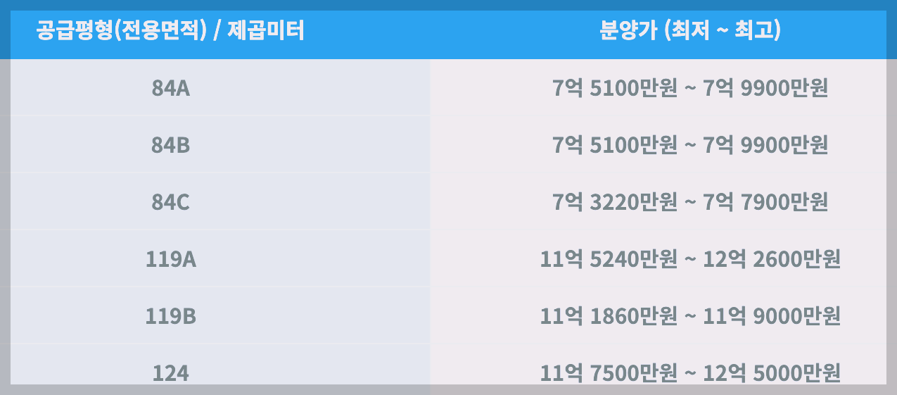 단지는 전용면적 66~124㎡로 다양한 옵션을 제공합니다. 전용면적별 가구 수는 다음과 같습니다