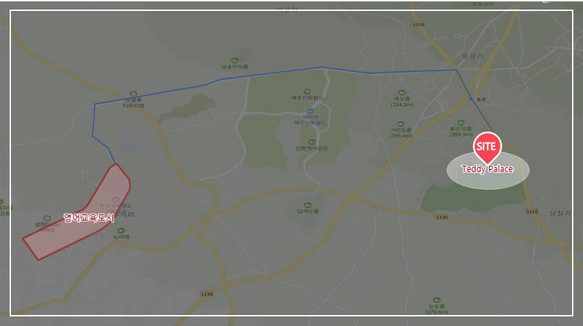 서귀포 바다, 한라산, 산방산 조망이 가능한 뛰어난 자연환경 입지 동광복합환승 센터 개발, 영어교육도시 발전 등 최고 수혜지 제주남북 관통 평화로 인접 제주 서부권역 및 서귀포 접근성 우수 영어교육도시 14분, 중문오일 시장 12분, 서귀포 이마트 24분 소요