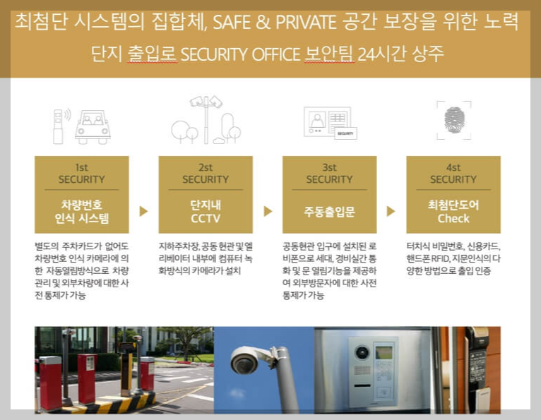 안전한 생활을 위해 24시간 보안 시스템이 운영되며, 최첨단 네트워크 시스템이 구축되어 있습니다.