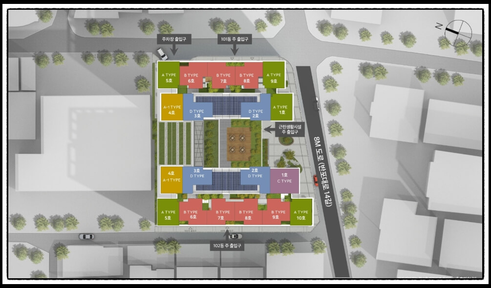 - 스마트 홈 시스템: 얼굴 인식 출입, 스마트 스위치, 안심 도어록 등을 통해 입주민의 안전과 편리함을 보장합니다.