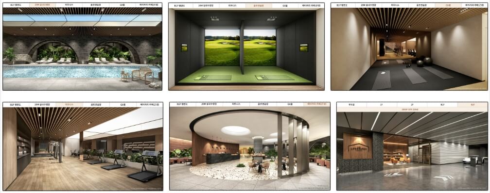 - 실내 수영장: 20m 길이의 고급 수영장과 피트니스 센터, 골프 연습장이 입주민 전용으로 운영됩니다.