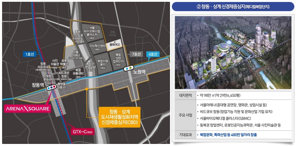 창동은 2040 서울플랜의 7대 광역거점 중 하나로 선정되어 있으며, 다양한 도시재생사업과 인프라 개선이 진행 중입니다. 또한, 교통 인프라의 확충으로 창동 지역은 서울 및 수도권 북부 광역 교통의 중심 역할을 수행할 것으로 전망됩니다.