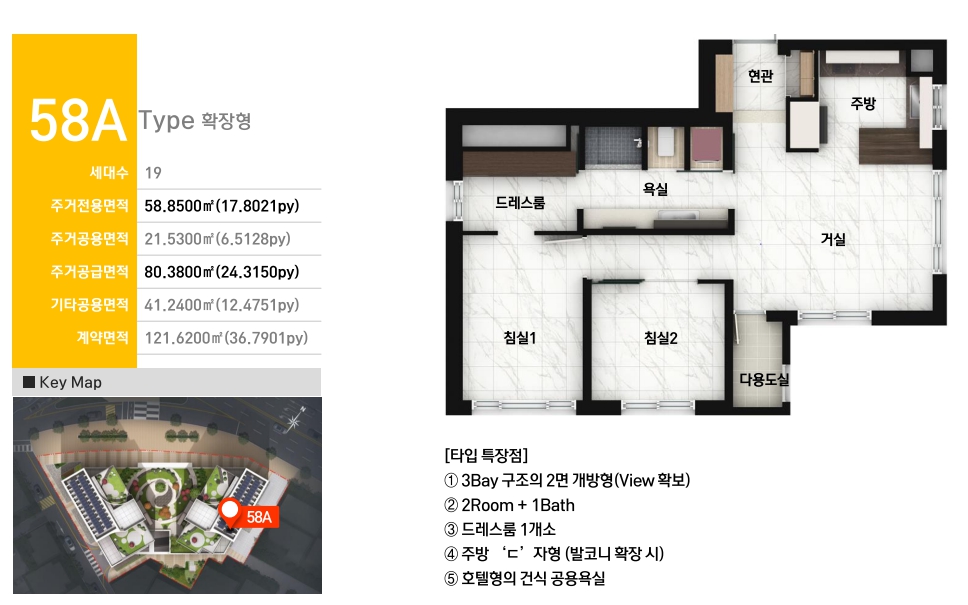 건축규모: 지하 6층~지상 22층, 총 2개 동/아파트 89세대, 오피스텔 65실 주차대수: 자주식 172대