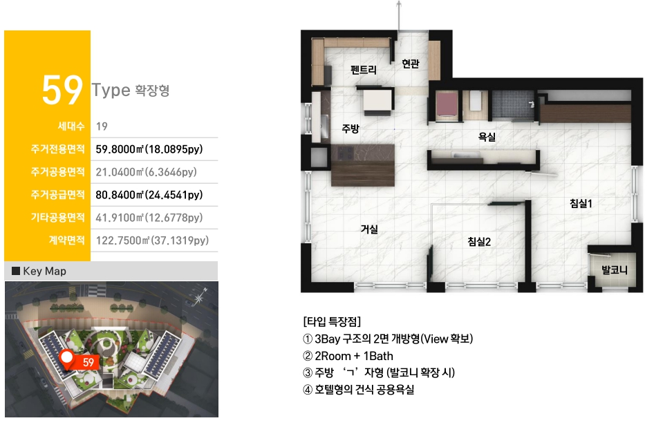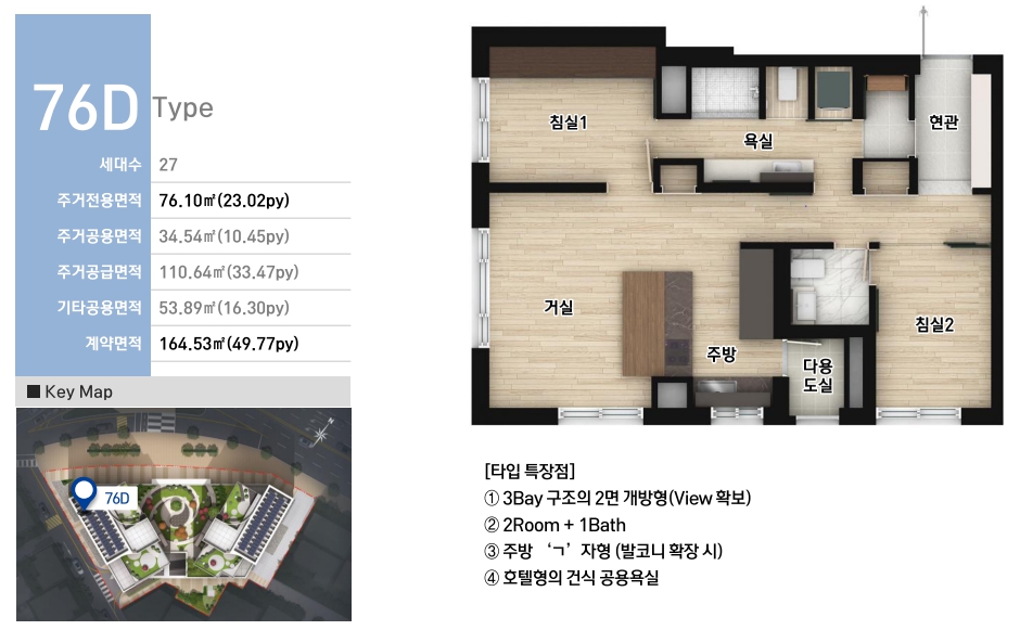건축규모: 지하 6층~지상 22층, 총 2개 동/아파트 89세대, 오피스텔 65실 주차대수: 자주식 172대