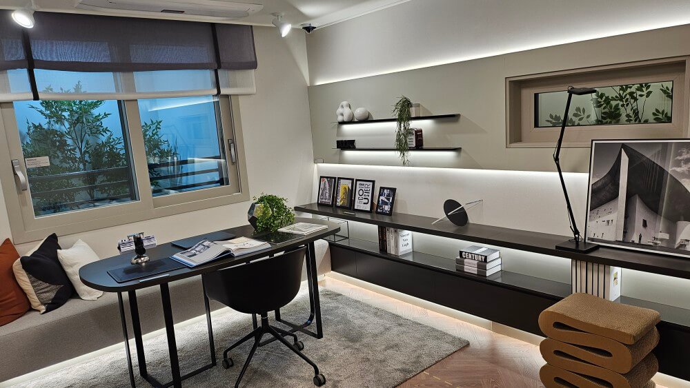채광과 환기를 고려한 4bay 맞통풍 구조, 실용설 높은 홈오피스 or 서재 두정 최초 최상층 복층 펜트하우스 특화 설계