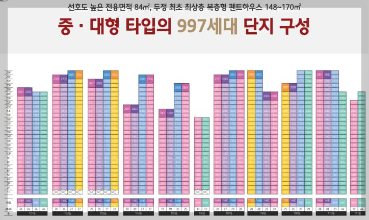 건축규모: 지하2층~지상최고 29층, 11개 동 총 997세대