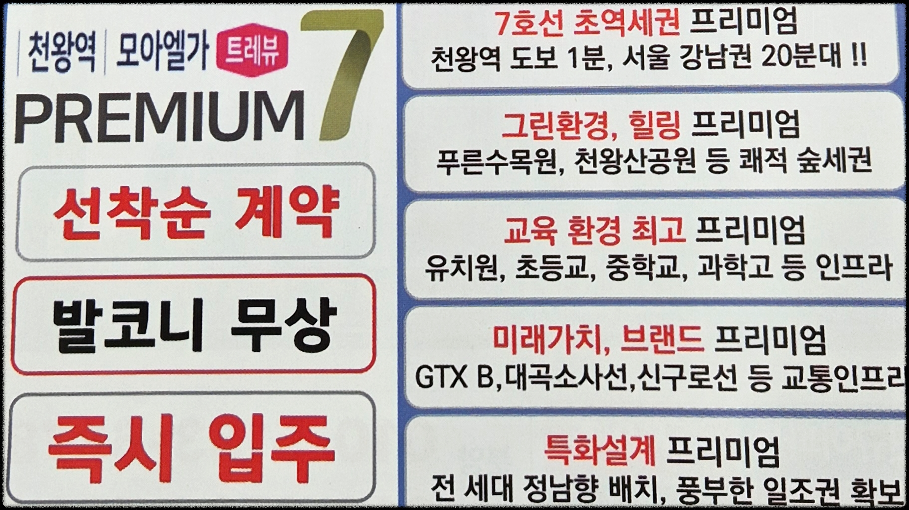 이런 조건 덕분에 천왕역 모아엘가 트레뷰는 실거주뿐 아니라 미래가치를 고려한 선택지로도 충분히 매력적인 단지입니다.