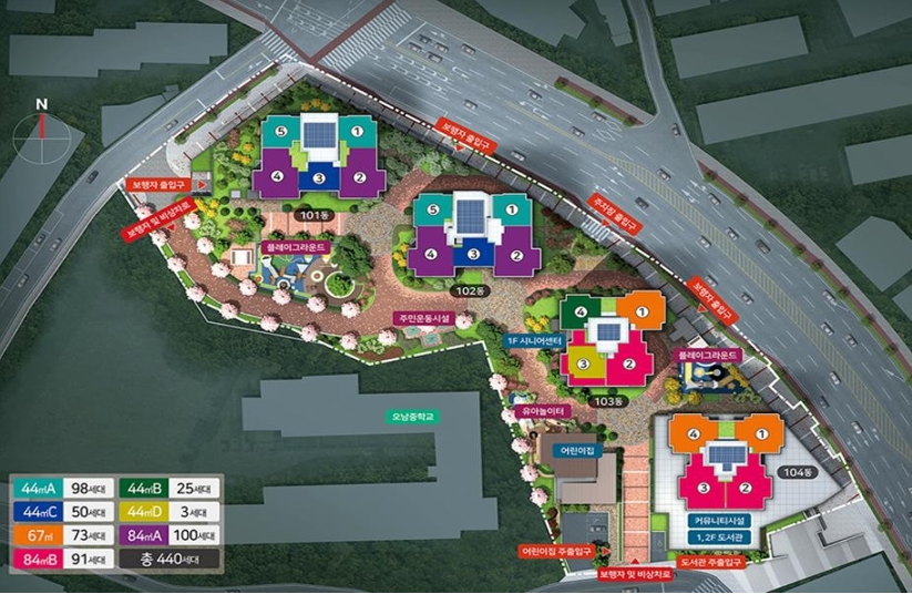 특히 보행자 중심의 단지 설계와 곳곳에 조성된 녹지형 휴식 공간은 입주자들의 일상 스트레스를 줄이고, 도심 속에서도 여유로운 분위기를 누릴 수 있도록 만든 점이 돋보입니다.