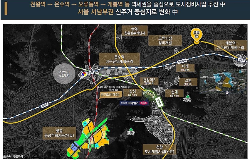 또한 천왕·오류·온수 일대는 재개발·재건축·민간 공급 등이 동시에 진행되고 있어 지역 발전 속도가 빠른 곳입니다.
