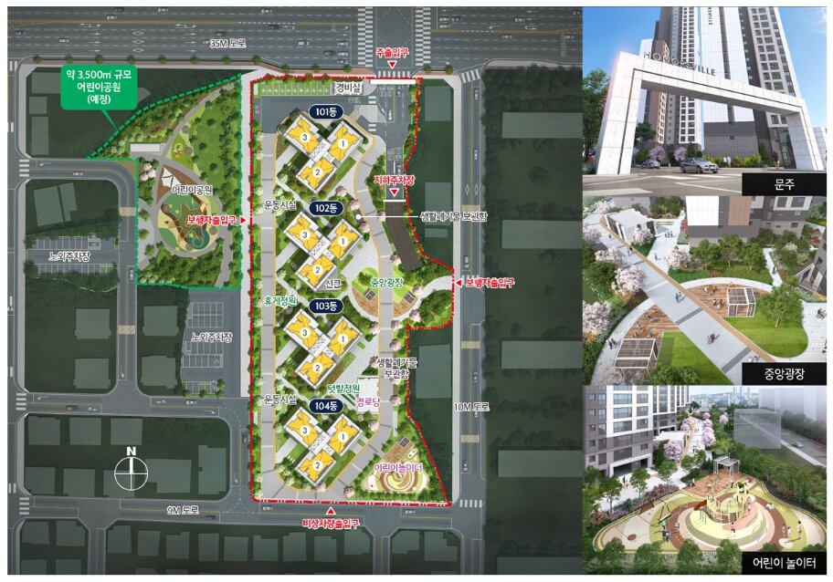지상부에는 차도와 보행로를 분리해 입주민 안전을 확보했으며, 중앙광장, 텃밭 정원, 운동시설, 어린이 놀이터 등 여가 및 휴식 공간도 조성했습니다. 이러한 설계는 단순한 주거 공간을 넘어 삶의 질을 높이는 단지 설계로 평가됩니다.