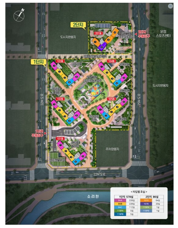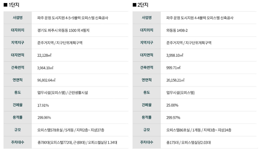 사업명: 파주 운정 도시지원 4 - 4~9 블럭 오피스텔 신축공사 지역/지구: 준주거지역 / 지구단위계획구역