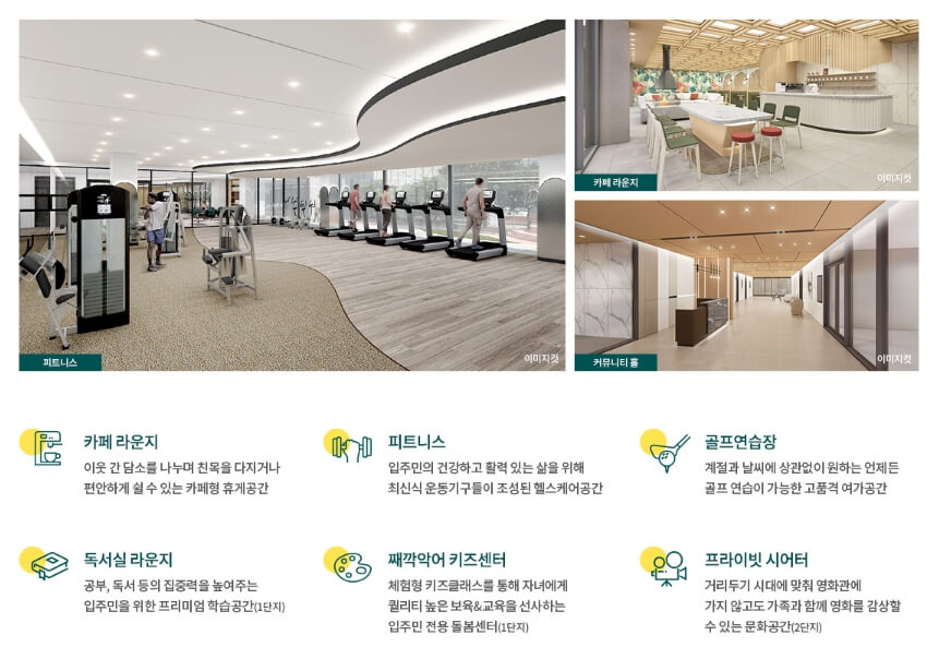 - 파주 최초 째깍악어 돌봄 서비스 도입, 초대형 커뮤니티 & 선큰가든 조성, 조경면적 & 동 간 거리 극대화한 공원형 단지