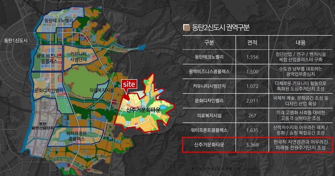 동탄2지구 마지막 계획지구이자 최대 주거 타운 자연친화적 입지 및 골프장등 신흥 부촌으로 부상 가능성 고 동탄 신주거문화타운 내 위치