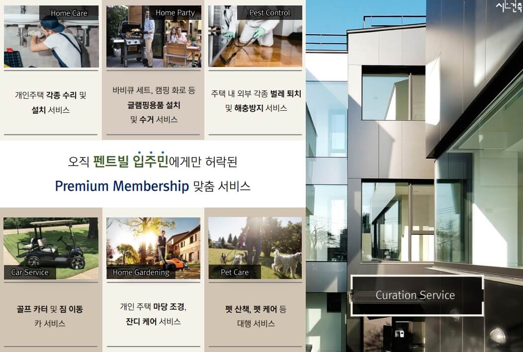 펜트빌 카운티 동탄은 블록형 단독주택으로, 주거 공간을 커뮤니티 시설과 함께 제공하여 아파트와 단독주택의 장점을 통합한 혁신적인 형태입니다. 이곳에서는 잔디 관리부터 캠핑 용품 대여까지 다양한 프리미엄 서비스를 통해 입주민들의 삶을 더욱 풍요롭게 합니다.