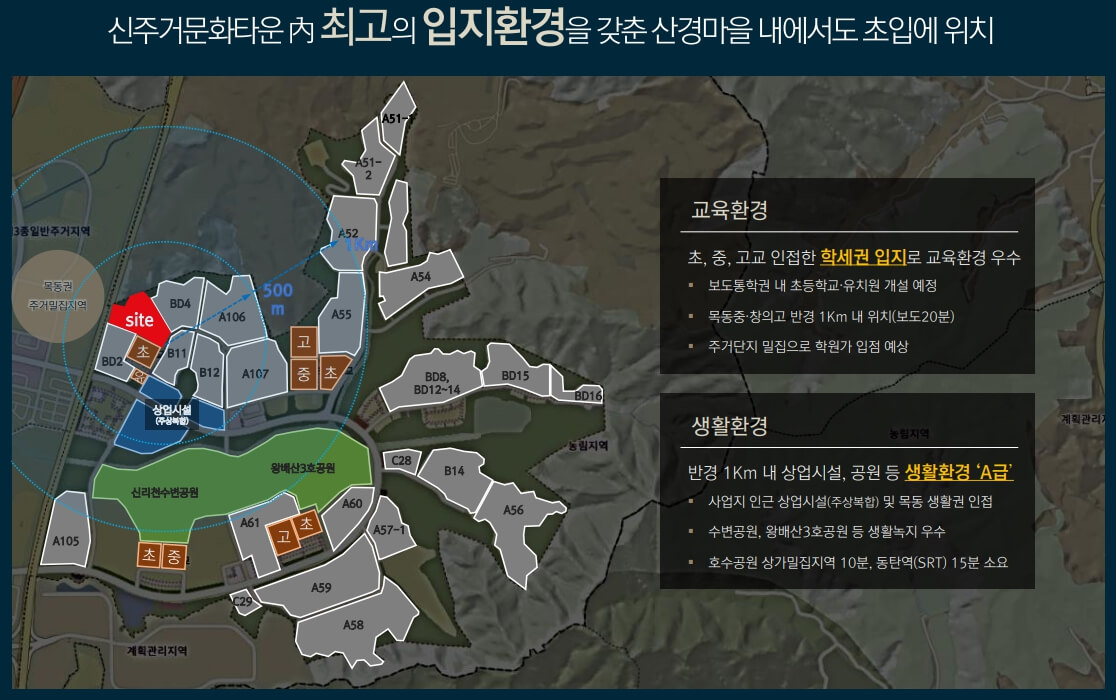 신리천, 왕배산 3호공원 등 우수한 자연환경과 롯데백화점, CGV등 편의시설 차량 약 15분 소요 사업지 인근 상업시설 부지 위치로 편의시설 양호 신주거문화타운 내 최고의 입지환경을 갖춘 산경마을 내에서도 초입지에 위치하며, 주거를 넘어 당신의 라이프 스타일을 현실로 만들어냅니다. 주택 내에서 더 나은 생활을 위한 혁신적인 시스템을 제공하며, 교통 및 교육 환경은 물론, 풍부한 생활 인프라도 갖추고 있어 편안하고 안전한 삶을 보장합니다.