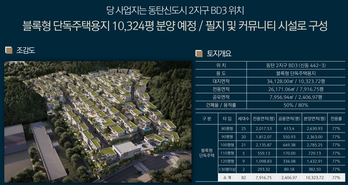 블록형 단독주택용지 10,324평 분양예정/필지 및 커뮤니티 시설로 구성