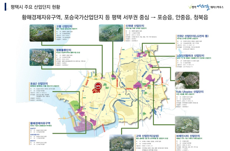 주변으로 오송,현곡산업단지가 위치하여 삼성전자가 들어서 고덕산업단지,포승국가산업단지 진위 2산업단지 인접있으며