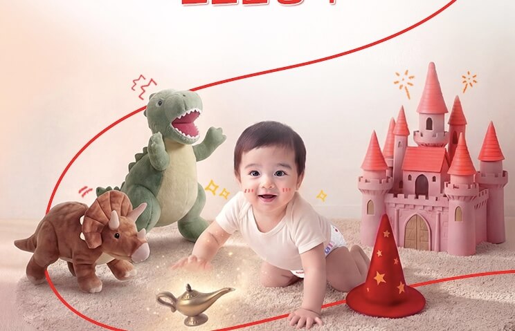 아이가 뒤집기를 시작하고 기어 다니기 시작하면 '매직컴포트'가 빛을 발합니다. 정말 얇아서 옷맵시도 살고 아이가 움직일 때 불편함이 적어 보여요.