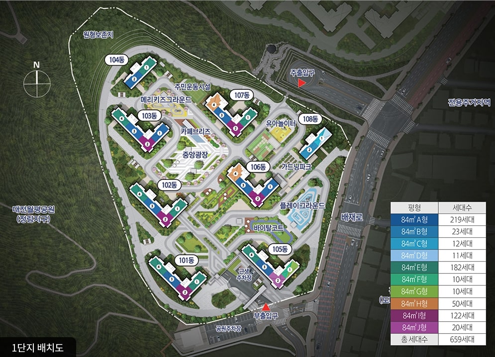 대지위치:서구 정림동 산 23-1번지일원(1단지)/서구 도마동 산 39-1번지 일원(2단지)