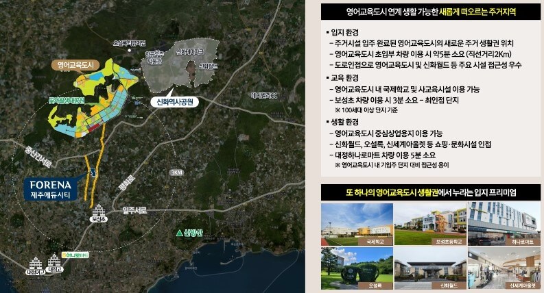 한화포레나 제주에듀시티는 제주의 교육환경을 기반으로 제주영어교육도시와 인접해 위치하고 있어, 국내 최고 수준의 교육을 바탕으로 매력적인 선택지가 될 것으로 기대됩니다. 특히 최근 코로나19의 영향으로 국내 국제학교 수요가 높아지면서 영어교육도시 내 국제학교의 인기가 상승하고 있으며, 이에 따라 추가 국제학교 설립을 위한 MOU 체결도 이뤄졌습니다.