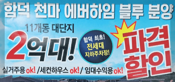 현재 천마 에버하임 블루는 할인 분양가로 2억대 이 기회를 놓치지 말고 저렴한 비용으로 세컨하우스를 마련해 보세요.