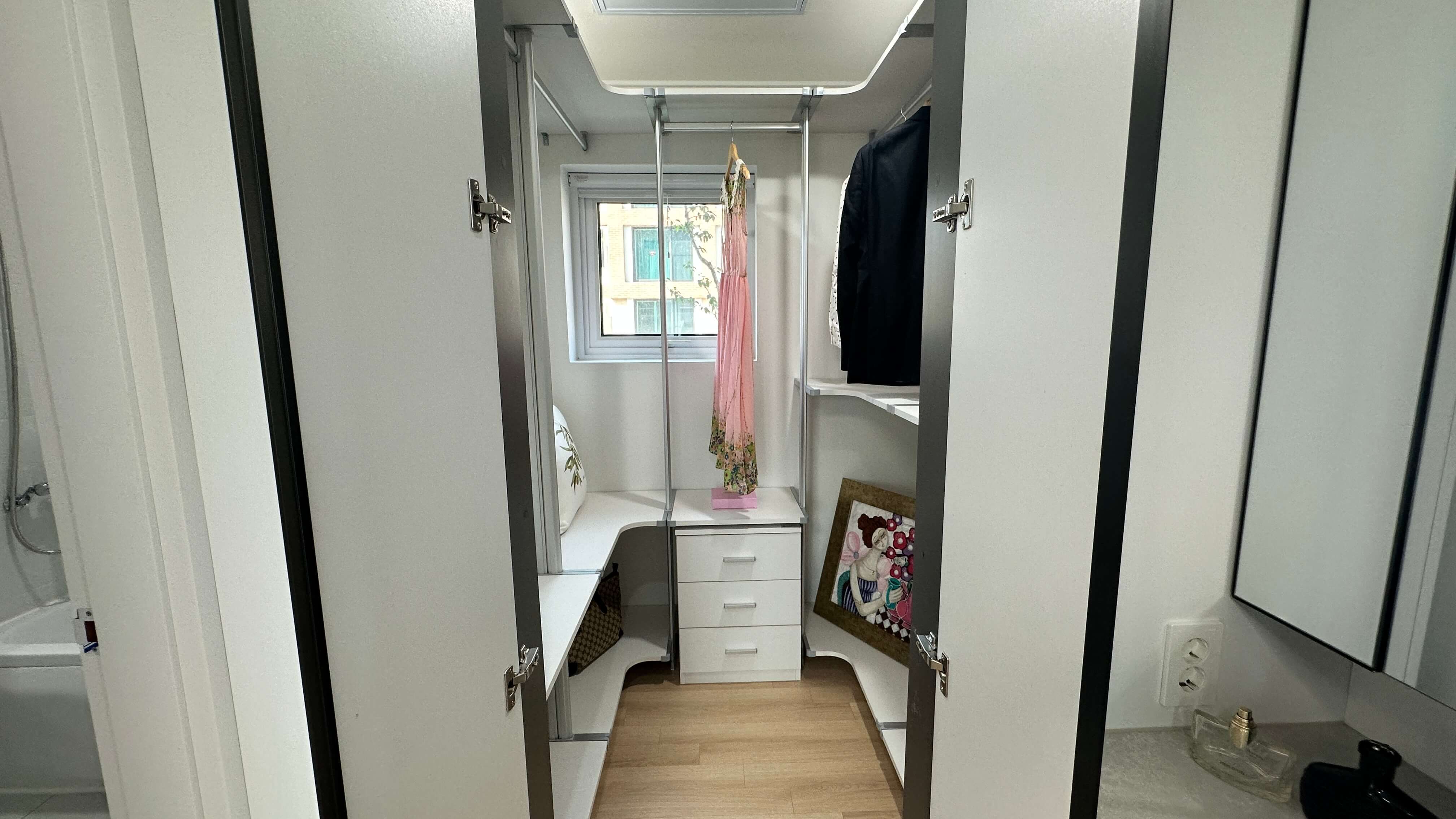 드레스룸과 부부욕실이 포함된 넉넉한 크기의 안방으로, 환기를 위한 창문까지 설계되어 있습니다.