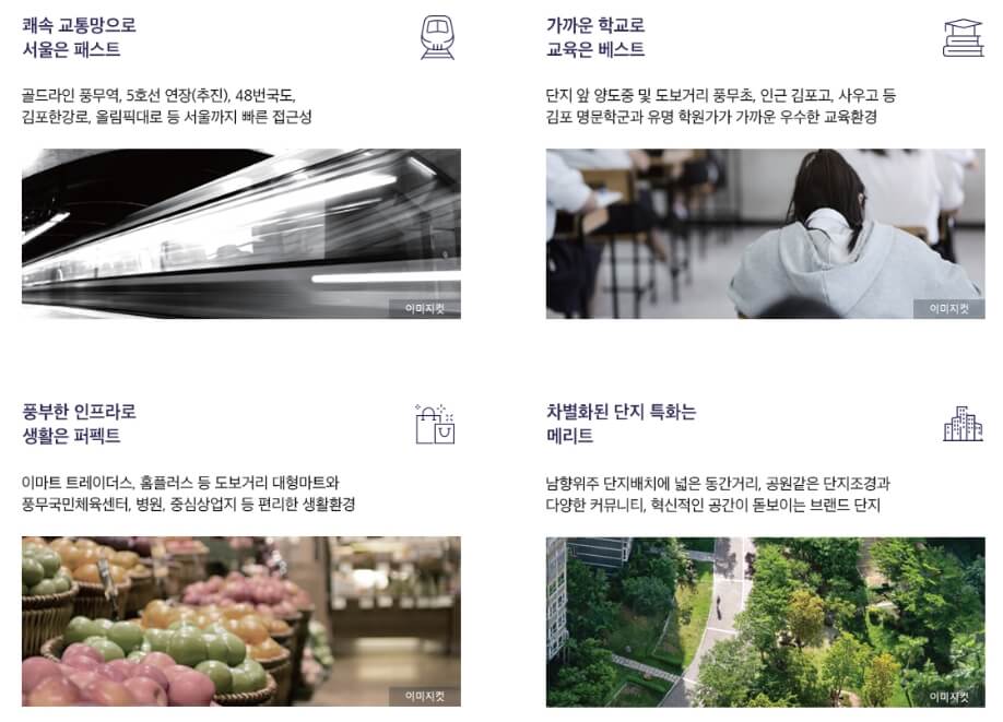 분양 관계자에 따르면 “풍무는 교통, 교육, 상업시설이 모두 완성된 입지로 입주 즉시 생활이 가능하다”며 “비규제 지역이라는 점에서 당분간 높은 관심이 이어질 것으로 보인다”라고 전했습니다.