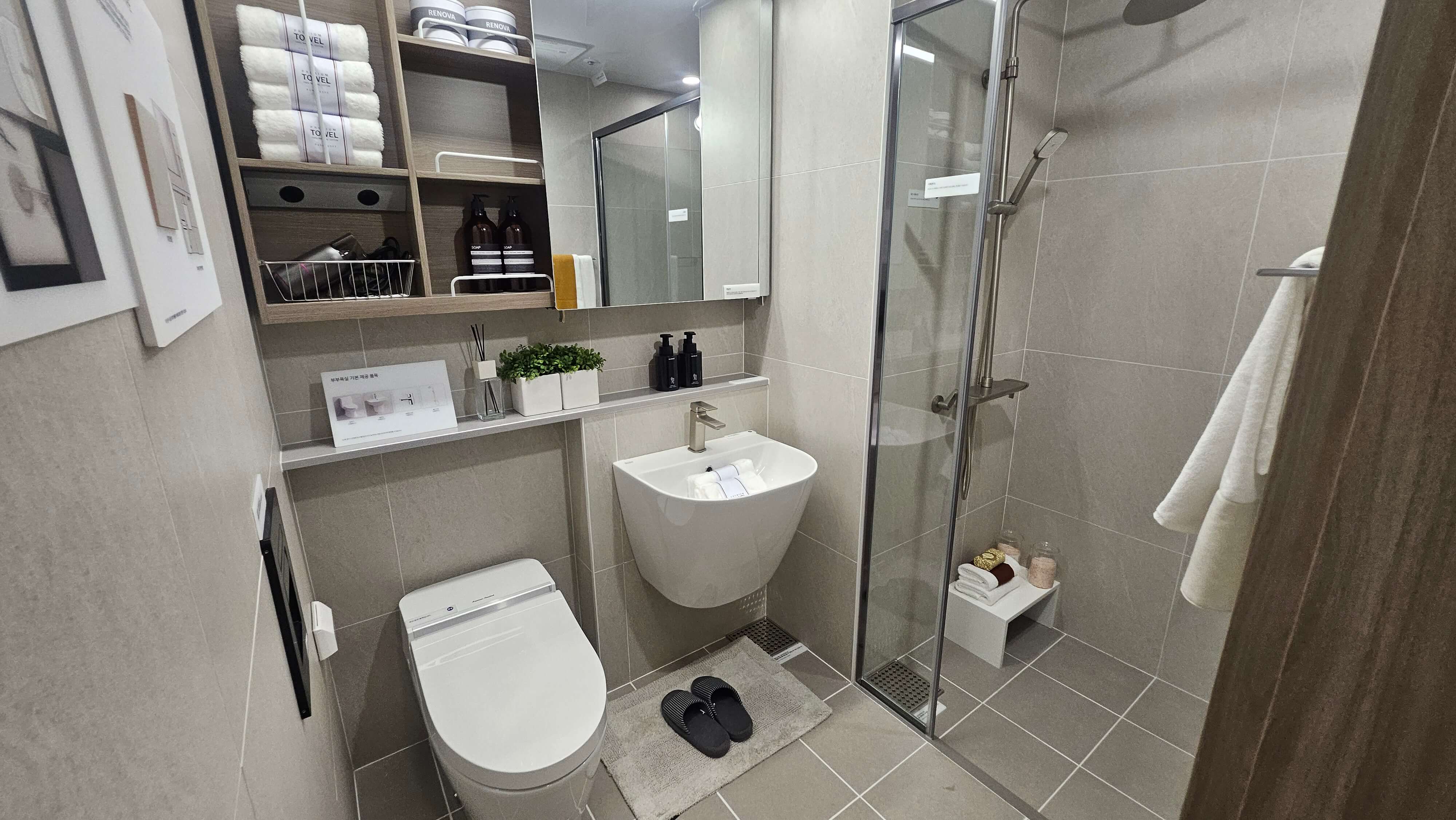 욕실은 건식·습식이 분리된 구조로 위생 관리가 용이하고, 마감 자재 또한 고급스럽게 구성되어 있습니다.