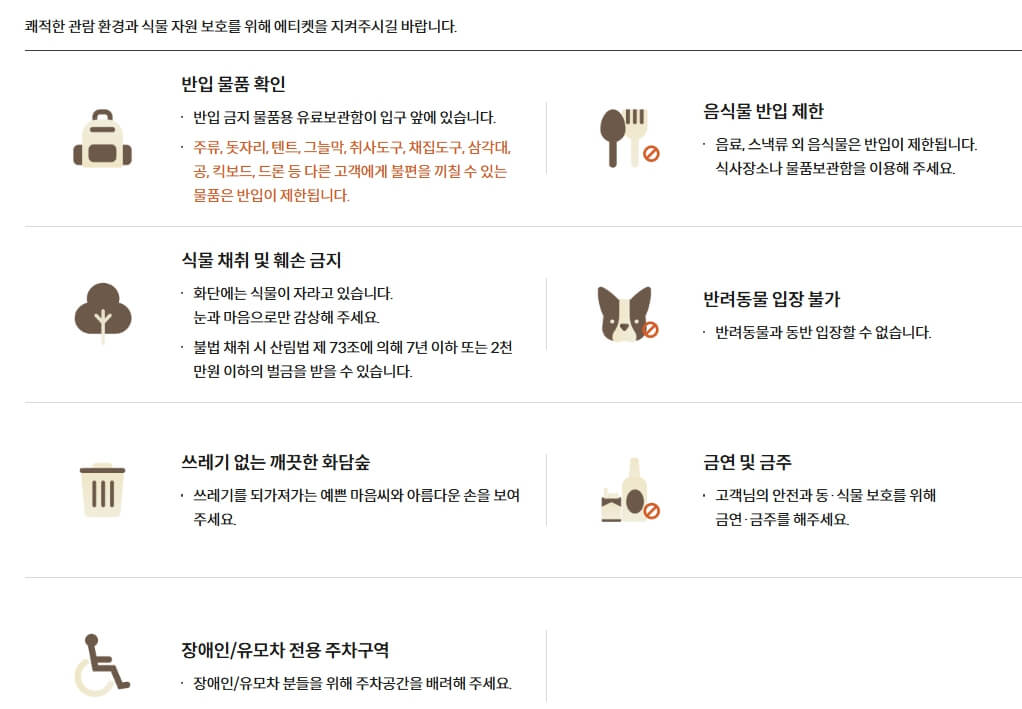 특히 가을 단풍 시즌은 매년 가장 붐비는 시기입니다. 2025년 기준 단풍 시즌은 10월 24일~11월 16일인데요, 이 기간 동안 방문하려면 9월 24일 오후 1시 예약 오픈을 반드시 기억해야 합니다.