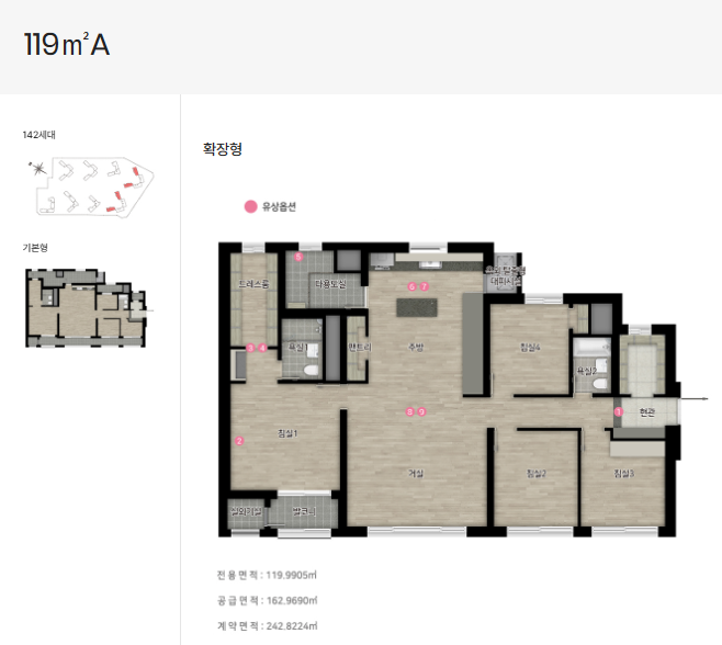 119A 타입: 142세대, 104동과 105동에 배치, 방 4개 구조