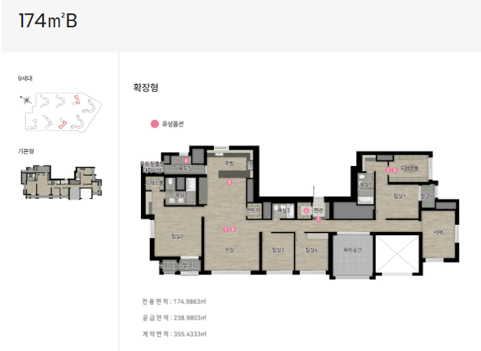 174A-8세대와 174B-9세대: 펜트하우스로 설계, 103동과 106동, 39층부터~47층