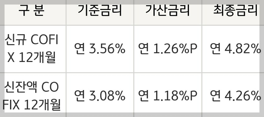 신규 취급액기준 및 신잔액기준 COFIX변동금리(잔액COFIX금리는 2019.7.16부터 신규사용중단) (대출금액 5백만원, 만기일시상환 가정시) (2023.4.28)